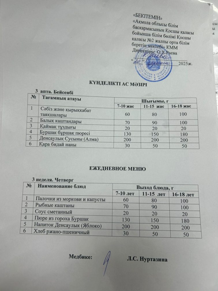 20 қараша (бейсенбі) ас мәзірі