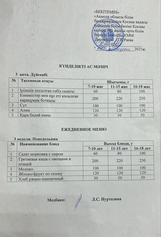 ҚАШЫҚТЫҚТАН ОҚЫТУ 15 желтоқан (дүйсенбі) ас мәзірі